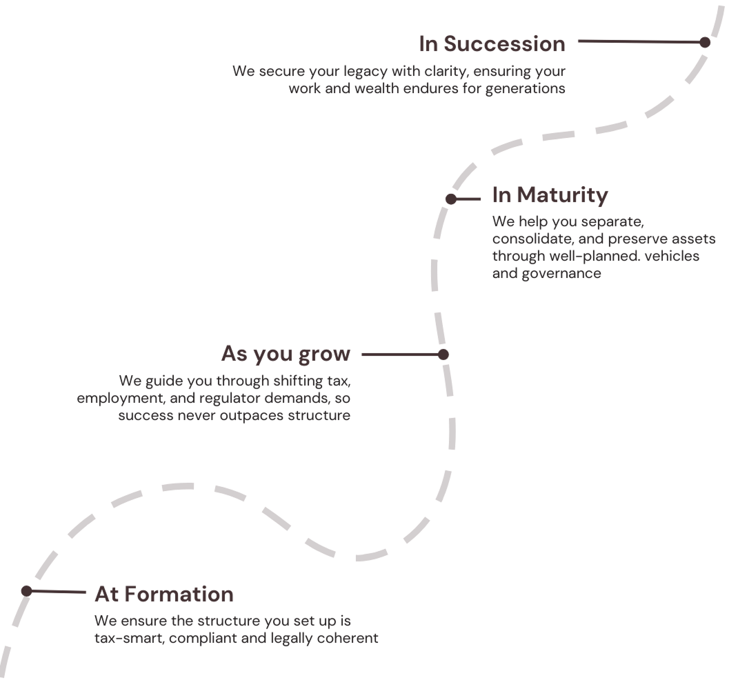 We guide you through every stage offering strategic legal, tax, & transaction advisory that evolves with your business.